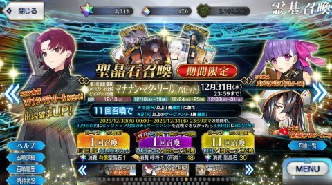 「FGO」攻略感想(794)ロードログレス絶対欲しーい!新年1発目の「ニューイヤー2026召喚」に挑戦してみたよ〜