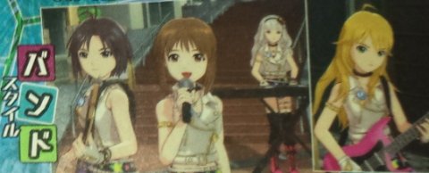 | PSP アイドルマスターシャイニーフェスタ (バンナム) ※ ※ ※ ※ ・発売日&価格は未定 ・アイマスのリズムアクションゲーム ・ハニーサウンド/ファンキーノート/グルーヴィーチューンの3本が発売 ハニーサウンド:如月千早、天海春香、秋月律子、三浦あずさ ファンキーノート:高槻やよい、我那覇響、水瀬伊織、双海亜美・真美 グルーヴィーチューン:星井美希、萩原雪歩、菊地真、四条貴音 ・メインテーマ曲は「MUSIC♪」 ・バージョンごとに異なるユニットを引きつれて音楽祭(フェスタ)に臨む、収録曲も異なる ・リズムゲームはピンクと水色のアイコンが中央に向かって流れるので対応するボタンをタイミングよく押す ・ミュージッククリップで流れるフルCGムービーはドラマ、アニメ、ライブ、バンドの4スタイルがある |