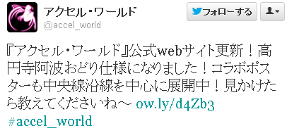 言われて気づいたけど、アクセルワールドって高円寺が舞台でしたっけ。杉並区高円寺w