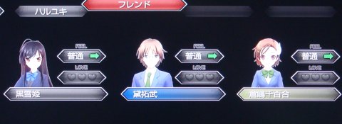 各キャラとは「FEEL」(感情?)・「LOVE」(親密度?)のパラメータが設定されている模様。
