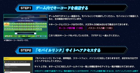 今回モバイルリンクというバンナムのサイトでパスコードを発行しているのですが、これがまた中々に分かりにくい。