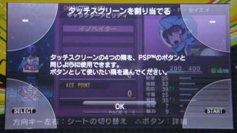 「タッチスクリーン割り当て」とは…画面の4隅にPSPのボタンを割り当てる機能のことです。