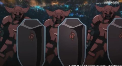 尾行されていたキリト&リーファは身を隠しきれず、やむなく謎の軍団と戦うことに…。