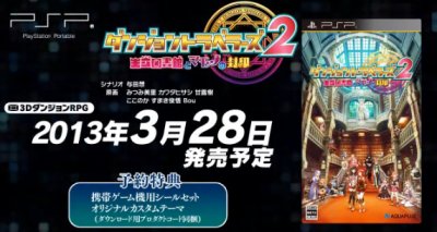 2月28日発売予定だったPSP「ダンジョントラベラーズ2」ですが、3月28日への発売延期が発表されました。(公式サイト)