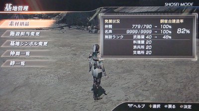 「施設ランク」が低いのは私が素材集めを優先してこなかったからか…。まぁクリアは近いとは思います。