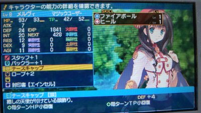 メルヴィの方もTPが毎ターン少回復する「ナースキャップ」が便利!