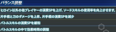 「バトルスキルの消費SPを緩和」ってのもどのぐらい緩和されてるのかなぁ…。例えばSP100必要だったのがSP80になっているとか?