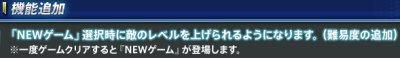 新機能として、NEWゲーム選択時に敵のレベルを上げられるようになりました(難易度の追加)