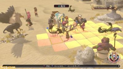 高低差のあるマップ。敵の大型モンスター。乗り物の象?など中々特徴的なSRPG戦闘になっているようです。