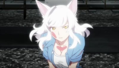 猫&虎と融合したことにより髪の毛がファンキーになってしまいましたが、なぜか嬉しそうな羽川さん。