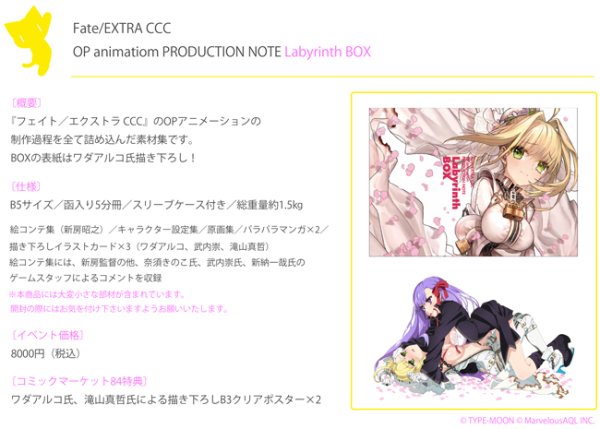 こちらは「Fate/EXTRA CCC OP animation PRODUCTION NOTE Labyrinth BOX」の情報です。