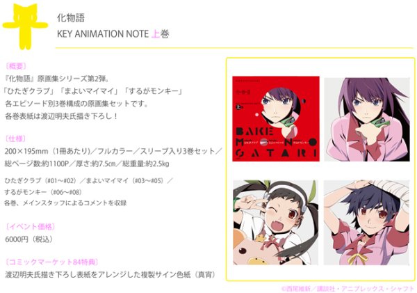 また「化物語 原画集上巻」の方はひたぎクラブ・まよいマイマイ・するがモンキーの3巻構成となる原画集セットとのこと。