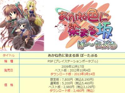 今回の「LOVELY QUEST -Unlimited-」とは全く関係ないけど、「あかね色に染まる坂 ぽーたぶる」のDL版が出ていて、しかも2480円なんですね。