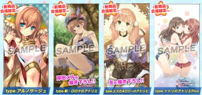 その他、描き下ろしではありませんが、「シェルノサージュ」よりイオンちゃん、「トトリ+」よりトトリ&ロロナのタペストリーも同時発売。