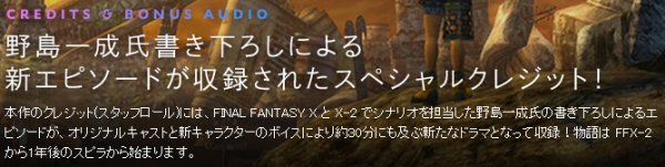 また、野島さん(FF10/10-2のシナリオライター)による完全新規の後日談エピソードが音声ドラマとして収録されます。約30分のボリューム!