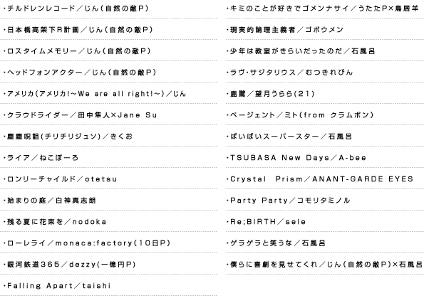 ちょっと尋常じゃない多さですが、これはPVをそのまま収録したり、IA一人だけだったり、その辺の要素が重なった結果だと思われます。