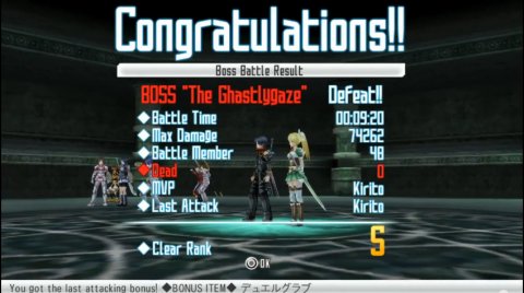 そしてラストアタックボーナスだけはキッチリ頂いていくキリトさん。さすがですぜ。
