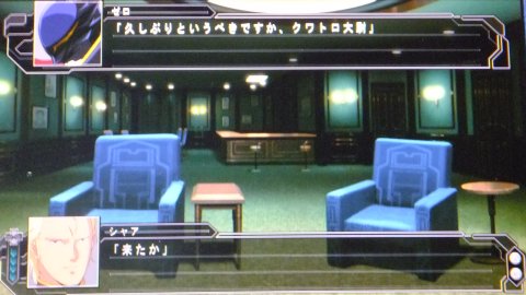 シャアが「友人が来る」とか言って、人払いをした部屋にゼロを招き入れてる…。