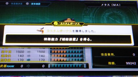 余った資金でメタスも5段階改造してみたけど、これも素晴らしいボーナス!修理&補給のスーパーエース機の誕生だ!