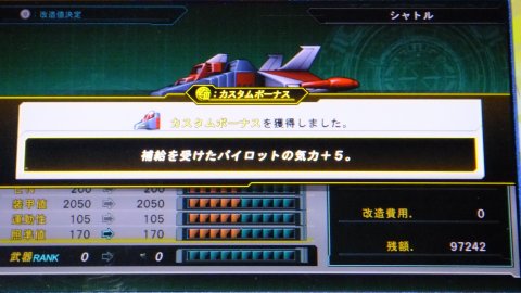 とりあえず専務エースに向けて、私もシャトルを5段階改造してみた。予想外に良いボーナスだったww